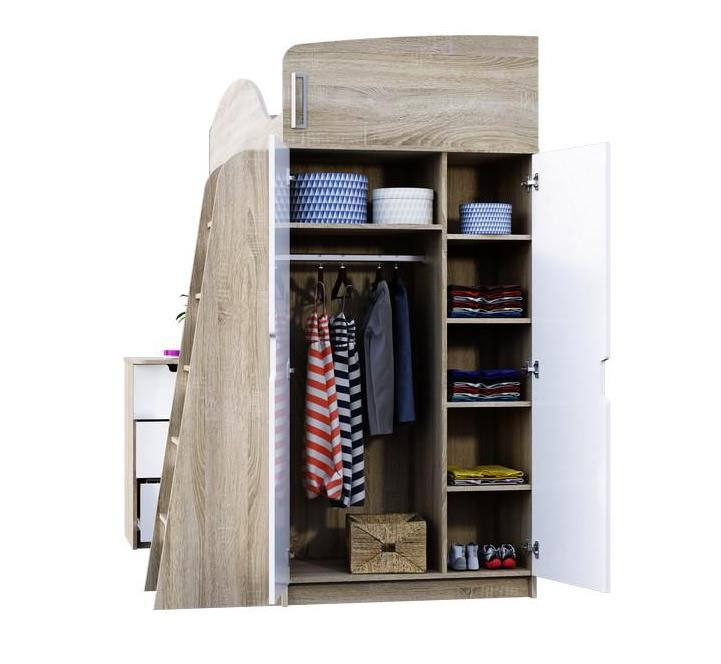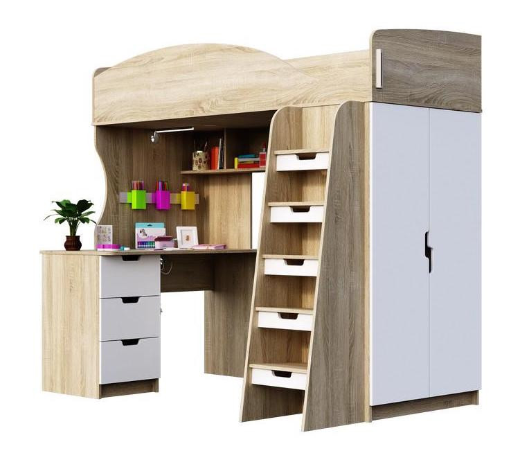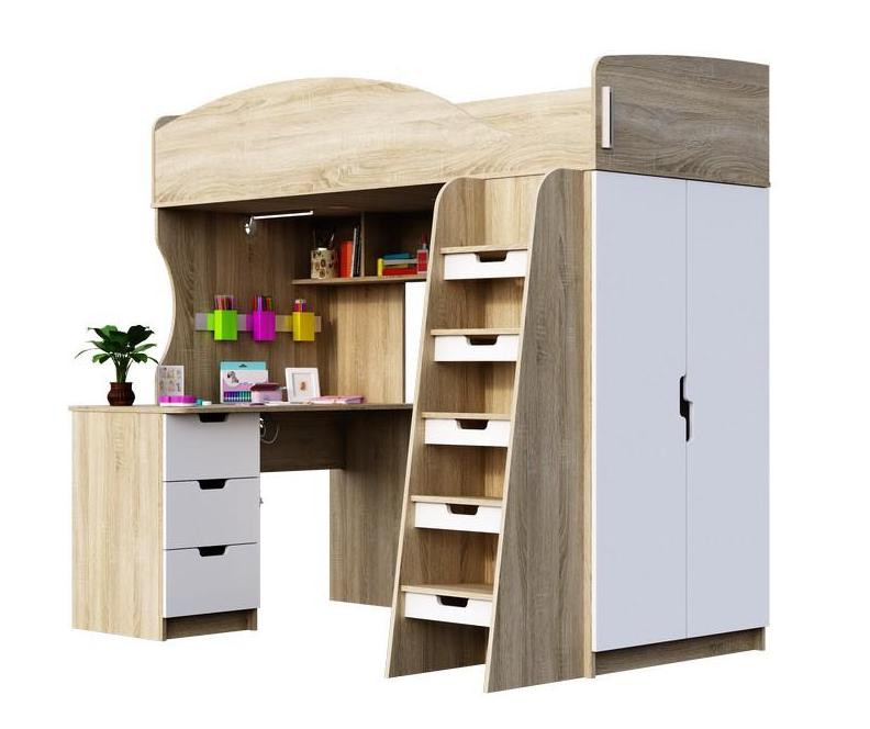 —Детская Кровать-Чердак Сэнди Дуб Сонома/Белый Глянец (Д-1235 х В-1820 х Г-2038 мм)