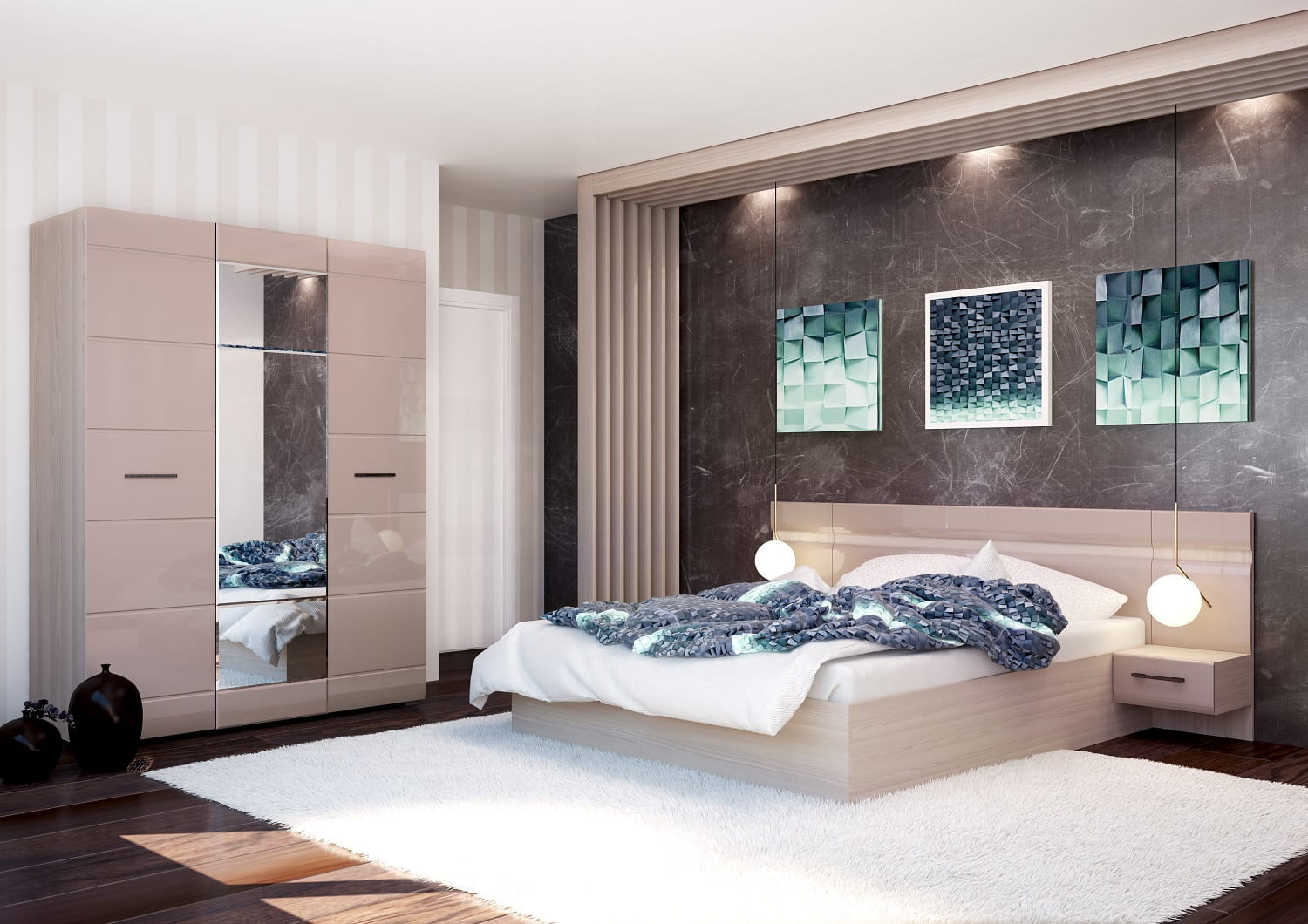 Спальный Гарнитур Нэнси - это  современная спальня в стиле Модерн. Набор включает в себя всё необходимое.